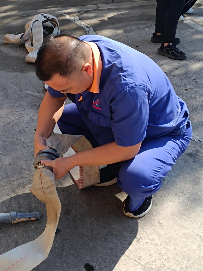 第三项火线救援,公司全员参与比赛。该项目通过模仿火灾事故救援现场,三人一组自由组合按抽签顺序轮番进行演练。裁判哨声一响,三人同时起跑,相互配合以规范使用灭火器,消防栓接水管对指定区域进行模拟灭火,按正确的流程对假人进行心肺复苏的全过程演练方式,展示团队应急救援能力与协作力。因涉及到生命安全的演练比赛,裁判员唐声星率先示范、一丝不苟、严格评判。最后,齐璇、钟华和唐柯以专业熟练的操作流程,最短的救援时间,力压群雄,获得了本轮小组赛第一名的好成绩。