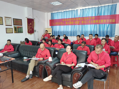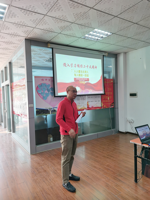 2022年11月8日上午,为深入学习领悟党的二十大会议精神,在桂林能源开发有限公司党支部组织下,能源公司和兴源公司全体党员干部职工集合在一起开展了“人人都当主讲人,每人精读一段话”的党建主题日活动。此次活动内容主要为:每人从习近平总书记在中国共产党第二十次全国代表大会上的报告中挑选一段话,结合公司高质量发展和自身岗位谈感悟。