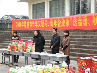 2010年春节临近,桂林兴源热能发展有限责任公司根据桂林市青年企业家协会秘书处统一部署,于2010年2月8日上午由我公司陆向东副总经理带领公司部分员工参加了这次桂林市青年文明号、青年企业家“送温暖、献爱心”新春暧冬行动,扶贫地点位于桂林市七星区毛塘路社区。